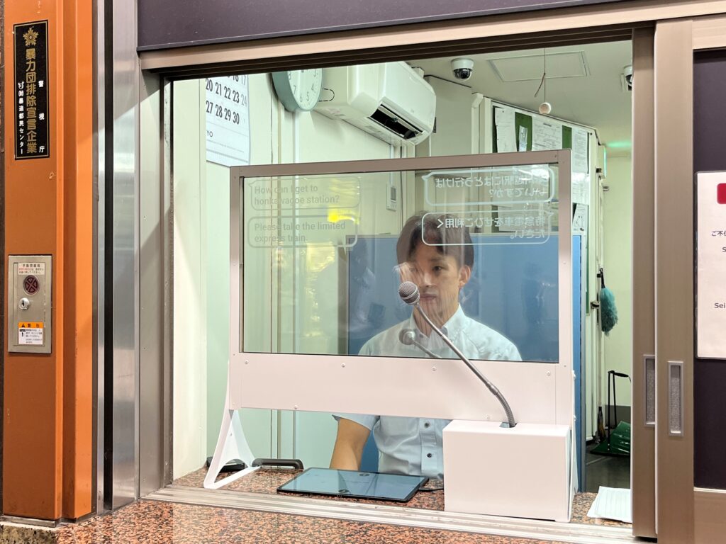 インフォメーションの駅員と客の間に透明なパネルが設置され、それぞれの言語で話した内容がお互いの透明なパネル画面に翻訳されて写されるということです。現在は試験導入で、今秋あたりからの実施を目指しているということです。翻訳機能は商品として登場した最初は使えるレベルとは到底言えない状況でしたが、数年経った今ではかなりのレベルになっています。